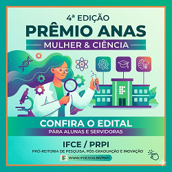 O Instituto Federal do Ceará (IFCE), por meio da Pró-Reitoria de Pesquisa, Pós-Graduação e Inovação (PRPI), lançou o edital da 4ª edição do Prêmio Anas – Mulher & Ciência. Confira aqui.