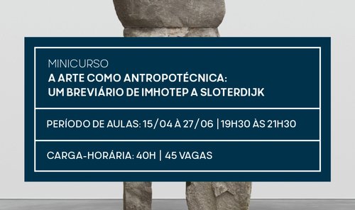 Conforme expresso em seu plano de trabalho, o curso se faz oportuno na medida em que propõe experienciar a Arte enquanto gesto humano de invenção de si, proporcionando aos cursistas formas de ver, fazer e pensar a Arte à luz de suas experiências de vida. Para tanto se propõe a apresentar um panorama macro-histórico da produção artístico-cultural – de Imhotep a Peter Sloterdijk - tendo como fio condutor o conceito de antropotécnica.