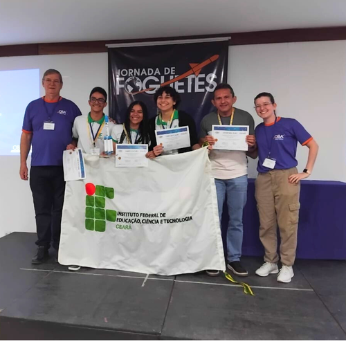 Alunos do terceiro ano do curso técnico integrado em Informática para Internet no campus de Crato do IFCE, Maria Isabelle Pereira Alves, Arifa Abdullah Barbosa Pereira e José Alisson Dias da Costa foram uma das equipes a conseguir a medalha de ouro na edição 2025 da Jornada de Foguetes, prova disputada na última quarta-feira (24), em Barra do Piraí (RJ). O foguete da equipe alcançou 229,2 metros no lançamento, o que colocou os estudantes na faixa necessária para garantir o ouro.