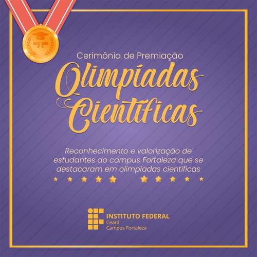 O campus de Fortaleza do IFCE realizará, na próxima sexta-feira (20/03), a partir das 15h, no auditório Nilo Peçanha, cerimônia de premiação das olimpíadas científicas realizadas durantes o ano de 2025 e que tiveram participações exitosas de estudantes do campus.