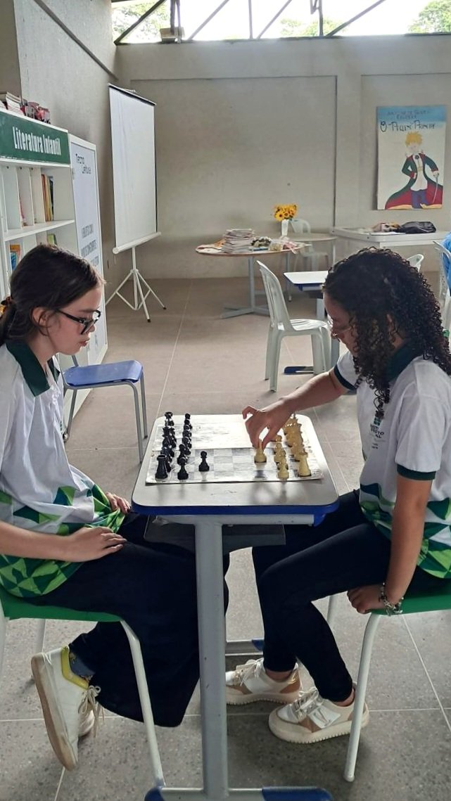 No xadrez feminino, o campus brilhou em dose dupla: ouro para Ana Carolina Pinheiro da Silva (1º ano) e prata para Maria Letícia da Silva Vieira (2º ano).