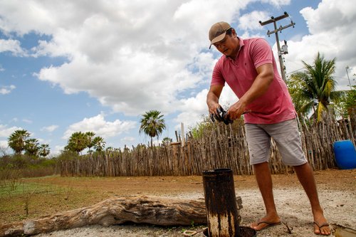 Sem água, os poços no quintal de casa foram fechados. A lida do campo não podia esperar. Somente tempos depois, um dos filhos de seu Sidrônio decidiu investigar o material encontrado. “Com um ano, meu menino mais velho, o Sidney, disse: ‘Pai, vamos cuidar daquele poço’. Eu disse: ‘Não, meu filho’. Ele disse: ‘Vamos mexer’. Pediu para eu comprar uma linha de náilon, fez uma caneca, meteu dentro e pelejou até que puxou esse óleo”, explica. Seu Sidrônio já tinha sua suspeita. “Água não pega fogo”, diz. Mas o material coletado do poço atiçava qualquer brasa retirada do fogão à lenha. O destino da amostra foi o campus de Tabuleiro do Norte do Instituto Federal do Ceará.