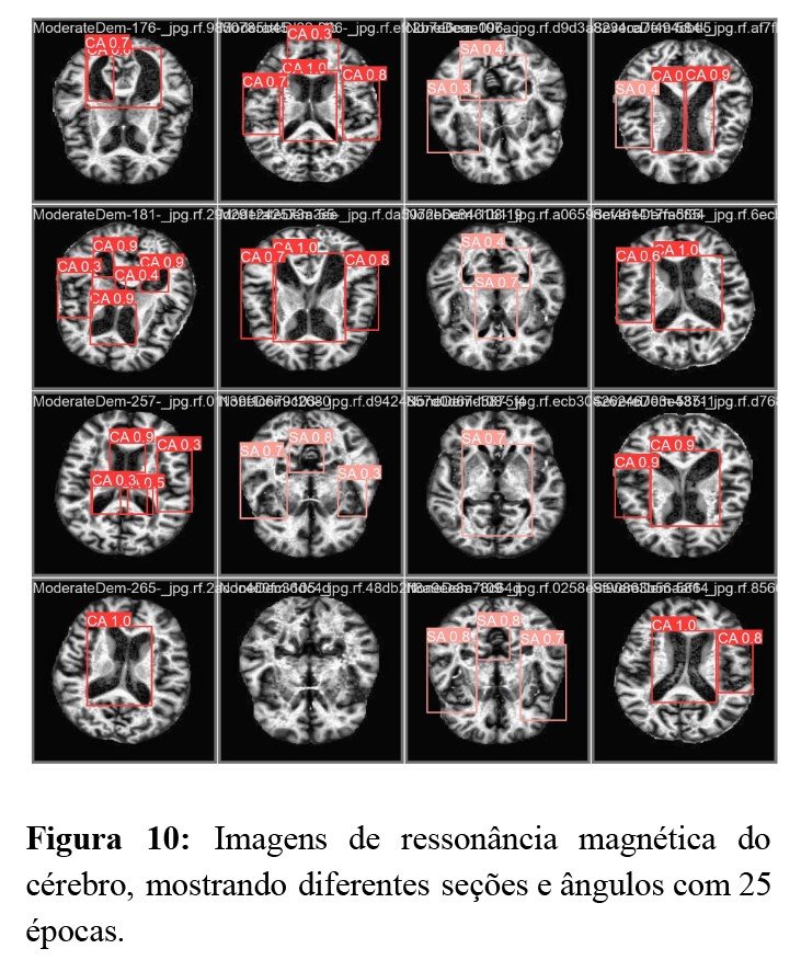 A pesquisa também foi apresentada, de maneira resumida, no Encontro de Iniciação Científica e Tecnológica (Enicit) do IFCE, em 2024. Durante a apresentação, foram abordados os principais conceitos sobre a Doença de Alzheimer, o papel do processamento digital de imagens no diagnóstico, além das duas ferramentas utilizadas no trabalho — Roboflow e Ultralytics YOLOv8. Também foram expostas imagens representativas dos resultados obtidos, evidenciando o desempenho do modelo e a evolução da acurácia.