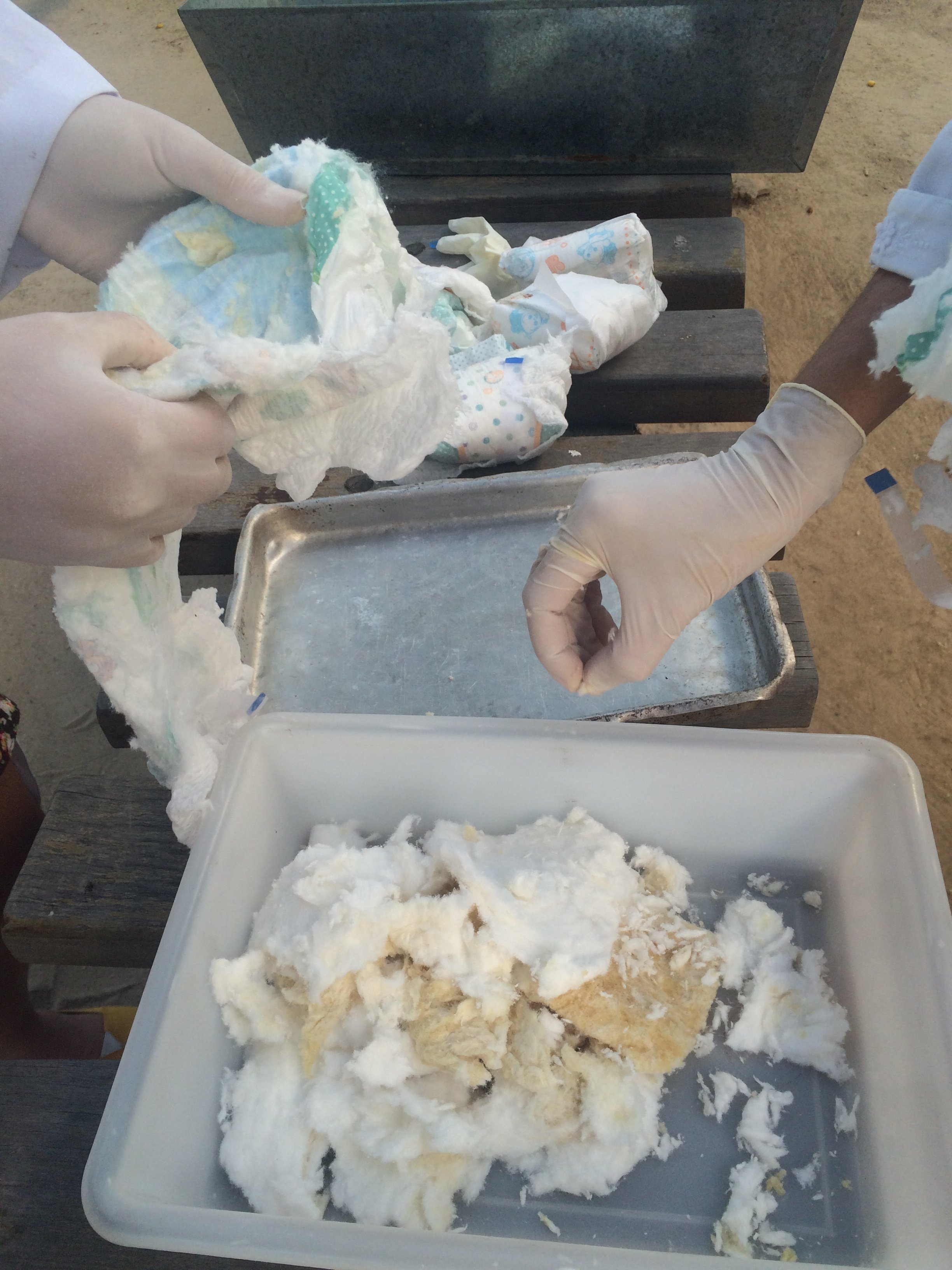 “Da fralda descartável, o hidrogel é retirado já com a presença da urina do bebê. O material passa por um processo de secagem e de trituração para posteriormente ser aplicado no solo para o cultivo das hortaliças”, descreve Mayara Jéssica. Confira as etapas do procedimento: