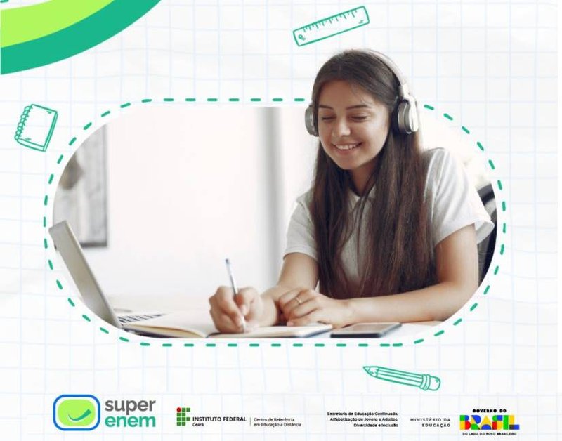 Além das aulas ao vivo, ministradas por professores especialistas nas cinco áreas do conhecimento avaliadas no Enem, o IFCE também disponibiliza materiais gráficos com resumos e dicas sobre os assuntos trabalhados, distribuídos aos inscritos. Até o momento, já foram elaborados e compartilhados cerca de 200 cartões digitais para auxiliar os estudantes na memorização dos conteúdos. As aulas do SuperEnem seguem até a última semana de aplicação do Enem, cuja primeira prova será realizada no dia 9/11 e a segunda, no dia 16/11. O projeto é desenvolvido com recursos do Ministério da Educação (MEC).